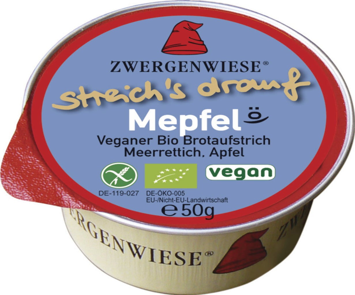 Ekologiska Kleiner streich’s drauf Mepfel från Zwergenwiese är perfekt när du behöver något gott mellan måltiderna. Basen består av finmixade solroskärnor och ekologisk rapsolja, medan pepparrot och äpple ger pålägget sin friska, välbalanserade smak. Bred på och njut av en liten smakpaus!